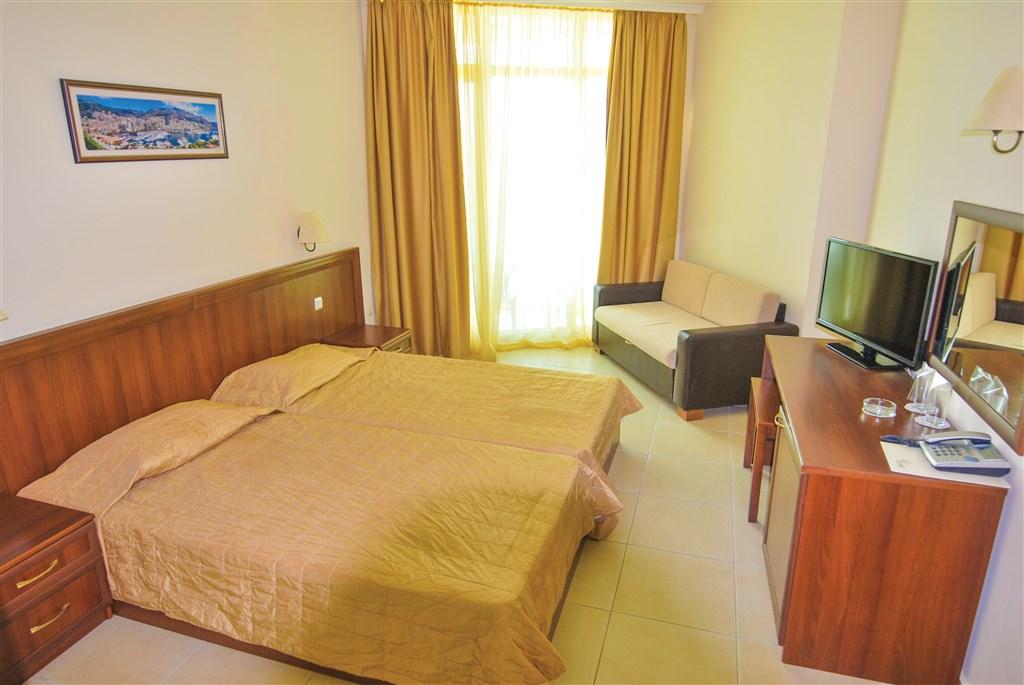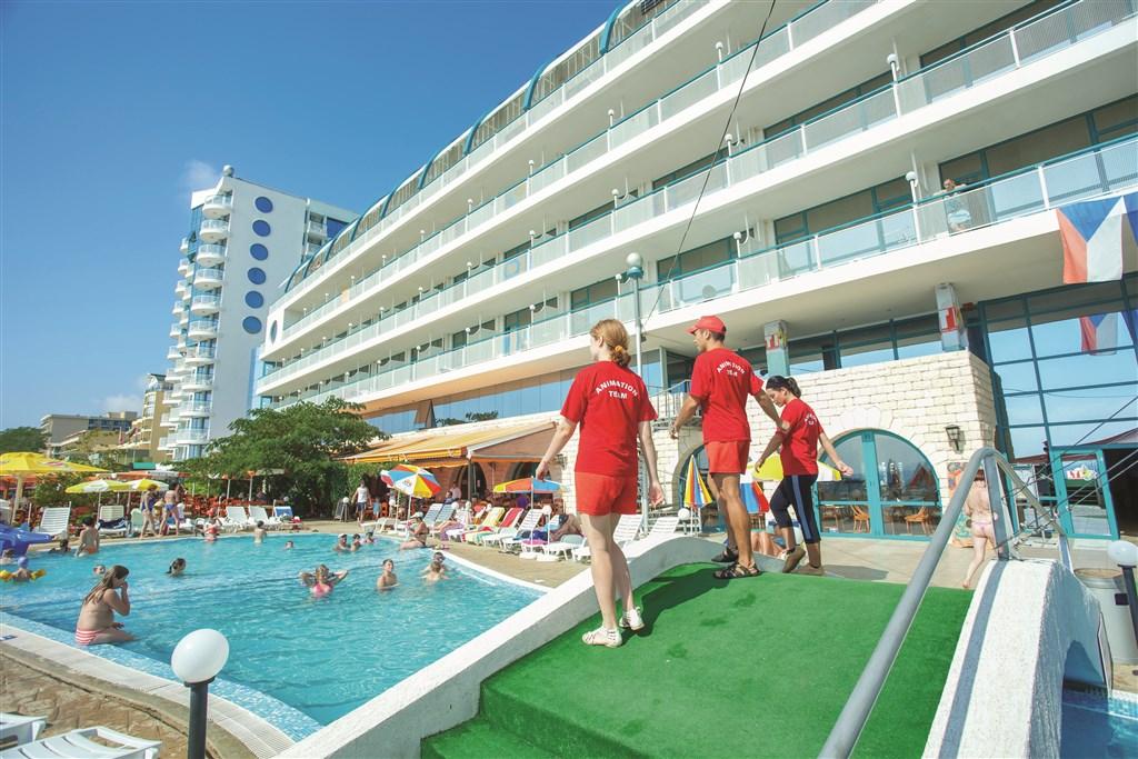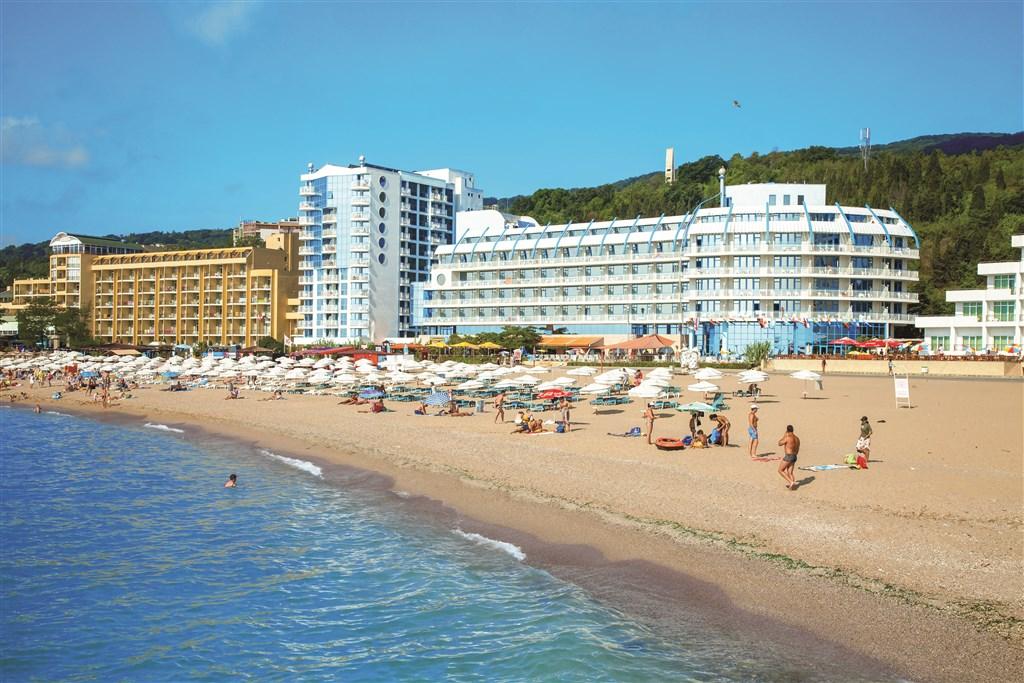 moderný hotel • v severnej časti letoviska • cca 800 m od centra • v blízkosti kultúrneho a spoločenského diania • počas letnej sezóny premáva minivláčik po celom stredisku • cca 20 km od mesta Varna |